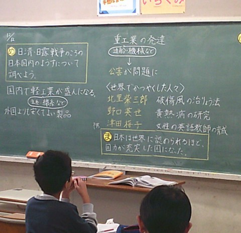 1組の社会では,日清日露戦争のころの国内の様子について学習していました。