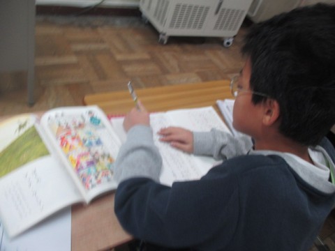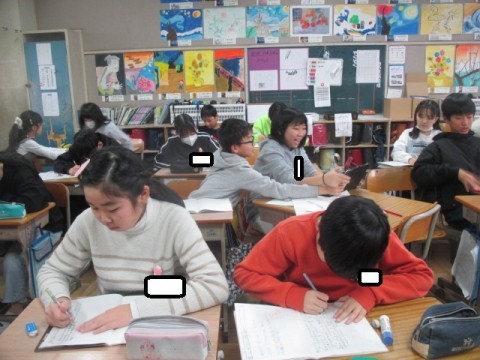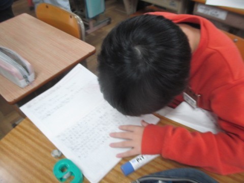 今日は,「読んで考えたことを自分自身の生活に結び付けて文章を書こう」に取り組んでいます。
