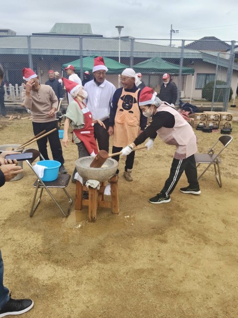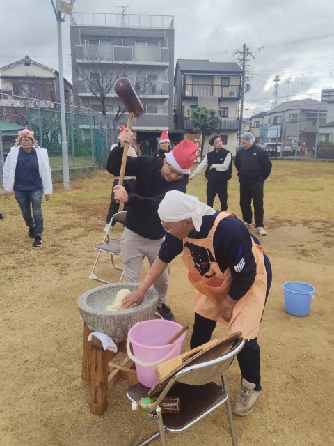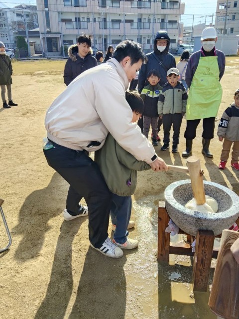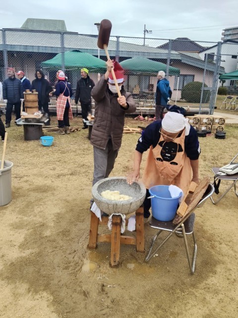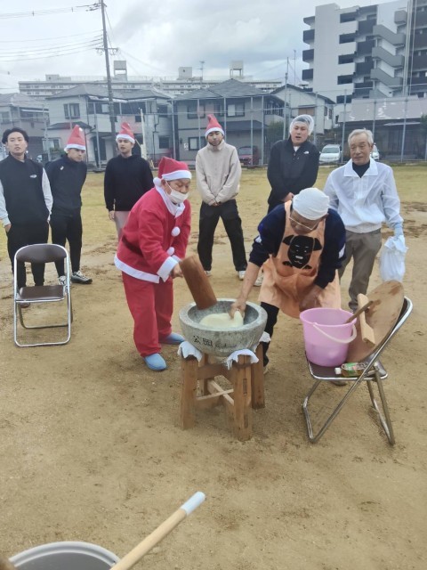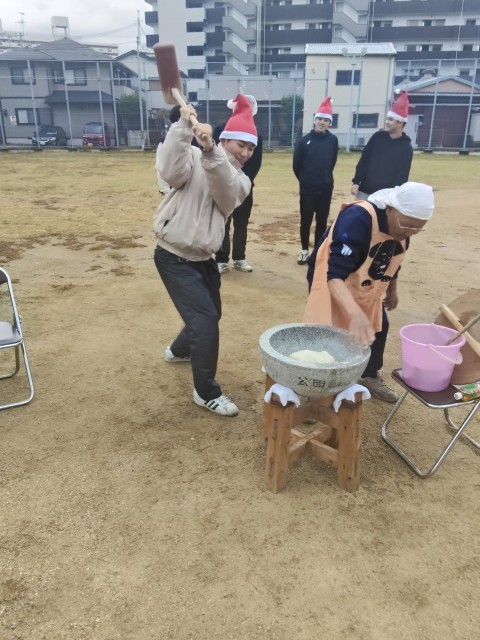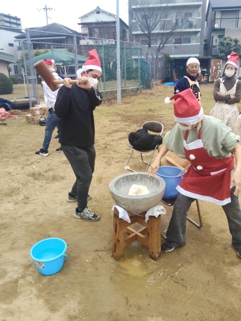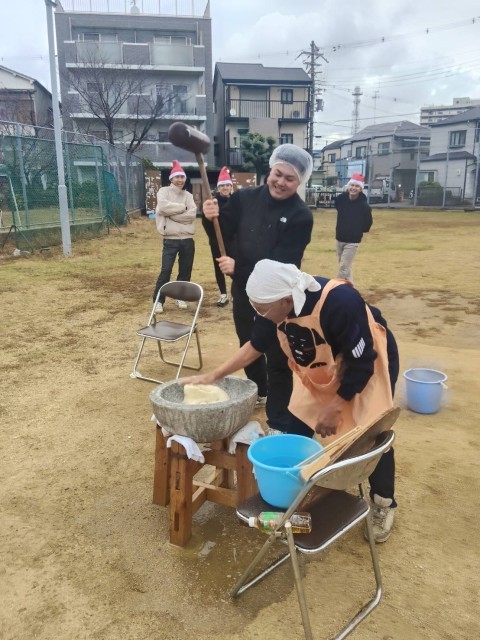 中百舌鳥小学校の先生たちもお餅をつきました。