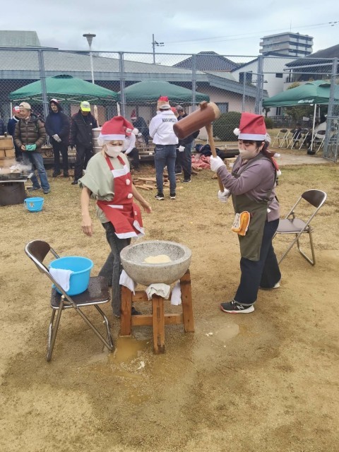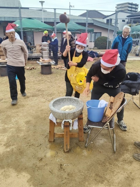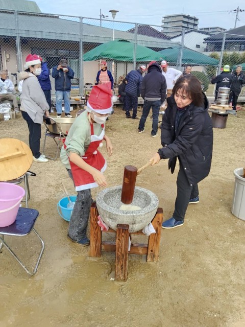 こどもふゆまつり 3 公開日 2025/12/14 更新日 2025/12/14 PTA活動・地域行事 12月14日(日)たくさんの先生たちが餅つきを体験させていただきました。中百舌鳥中学校の校長先生も、教頭先生もついています。卒業生たちも参加してくれて懐かしかったです。 +7