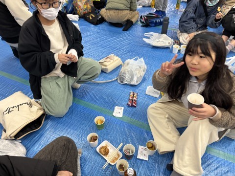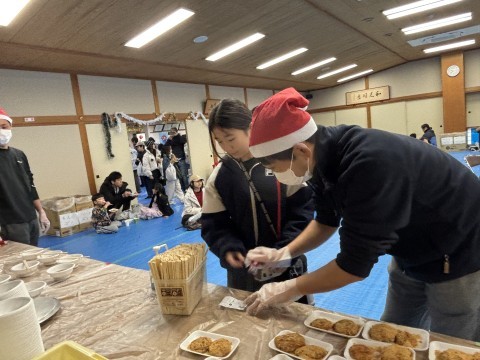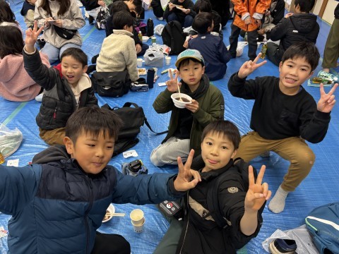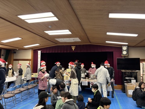 こどもふゆまつり 5 公開日 2025/12/14 更新日 2025/12/14 PTA活動・地域行事 12月14日(日)来場の児童や保護者の方々は、つきたてのお餅やチキンナゲット、学校協議員様や地域の方々のお世話になり1年生が収穫したサツマイモのお料理などは、寿楽会館の中で、いただきました。 +7