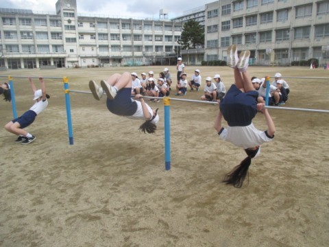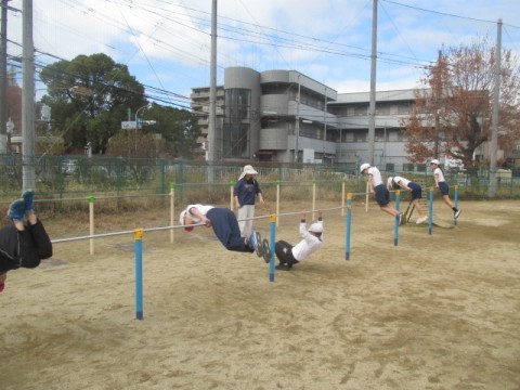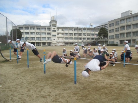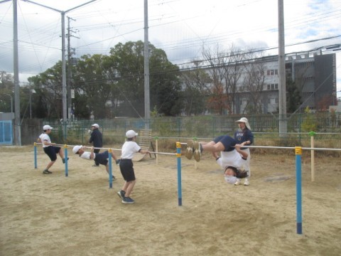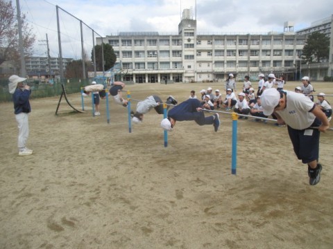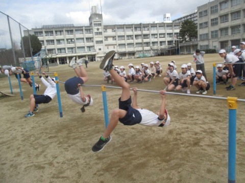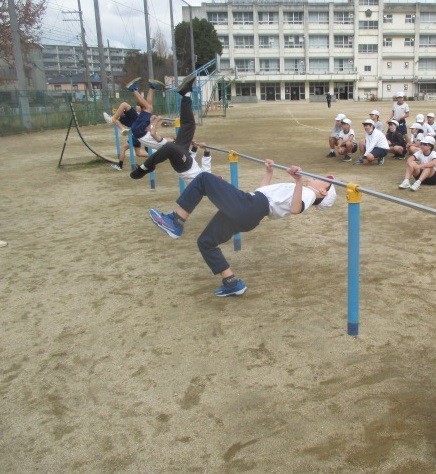 5年 学習のようす 3 公開日 2025/12/15 更新日 2025/12/15 5年生 12月15日(月)3組の体育です。走り幅跳びと鉄棒に取り組みます。最初に鉄棒「前まわり」「さかあがり」を練習していました。 +5