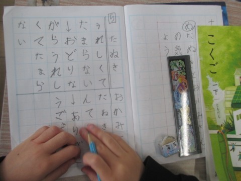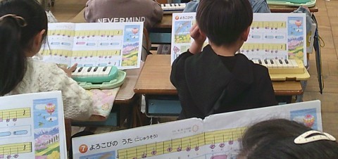 1年 学習の様子2 公開日 2025/12/15 更新日 2025/12/15 1年生 12月15日(月)2組の音楽では,鍵盤ハーモニカでよろこびの歌の学習をしていました。算数は「たしかめよう」のテストをしています。国語「たぬきの糸車」では,めあて「たぬきとおかみさんの気持ちをかんがえよう」に取り組んでいます。 +4