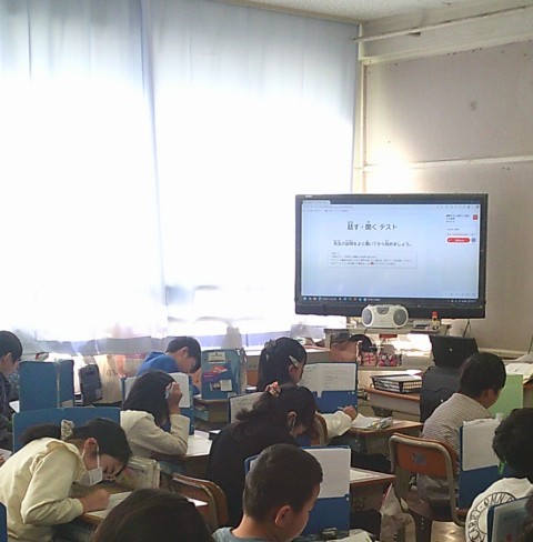 4組の国語では,話す・聞くのテストに取り組んでいました