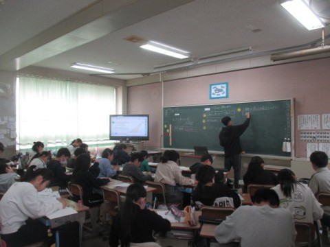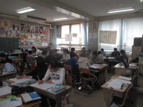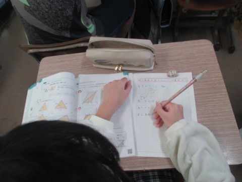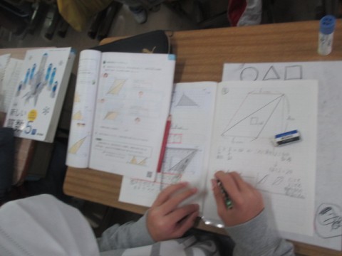 算数では「三角形の高さについて考えよう」に取り組んでいます。