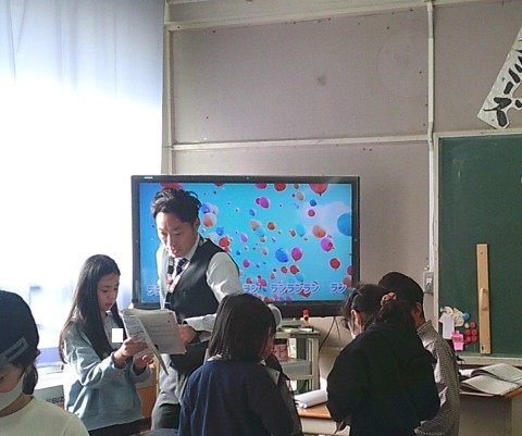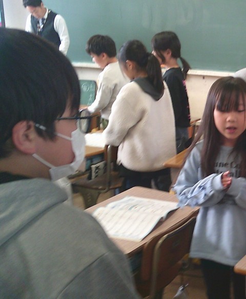 4組の音楽では,歌おう声高くの歌の練習を各グループで取り組んでいました。