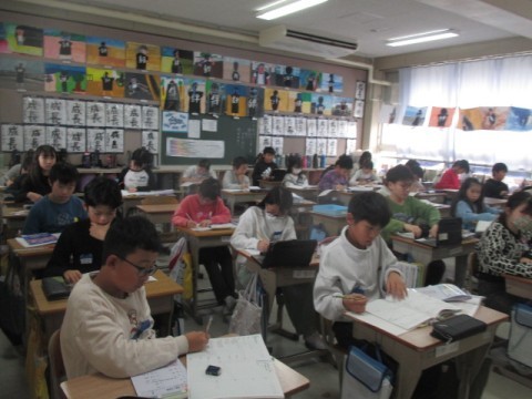 5年 学習のようす 3 公開日 2025/12/17 更新日 2025/12/17 5年生 12月17日(水)3組の算数です。今日は「平行四辺形の面積を求める公式を考えよう」に取り組んでいました。そのあと,計算ドリルの問題に挑戦しています。 +5
