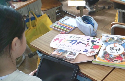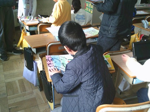 3組の社会では,町たんけんで見学したお店についてまとめていました。