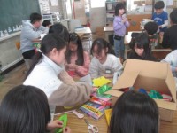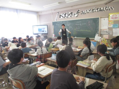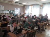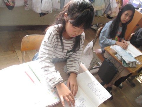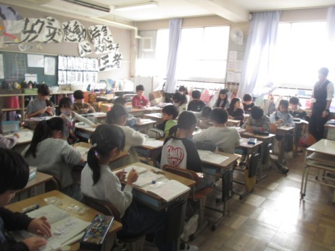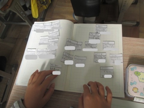 道徳「もちあじ」の学習では,めあて「道徳ノートを自分のもちあじにデザインをする」に取り組んでいました。お友だちが書いてくれた27枚のメッセージをどのようにノートに貼るかを考えながら,カードを貼り付けていました。