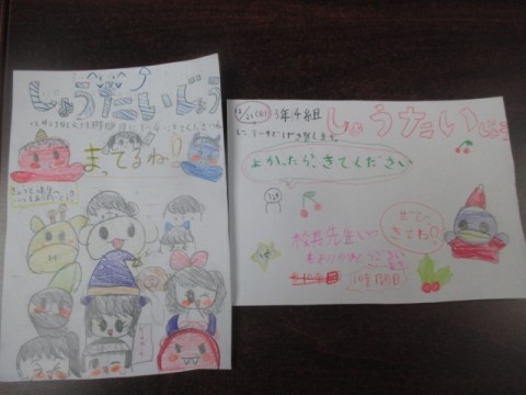 休み時間に4組の子どもたちが,計画しているクリスマス会の招待状を届けにきてくれました。