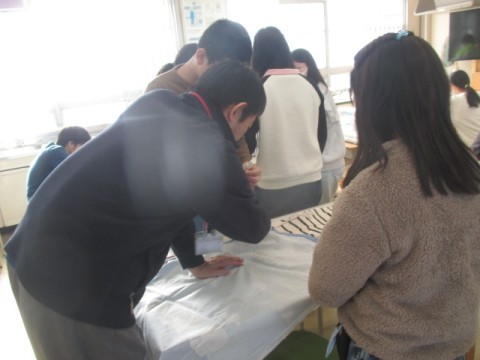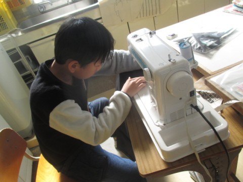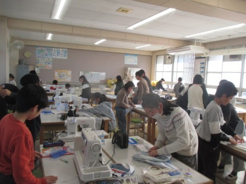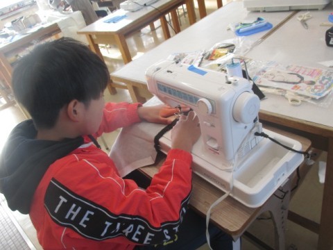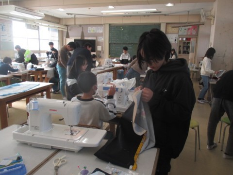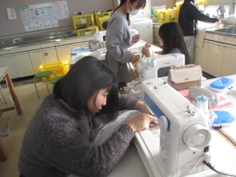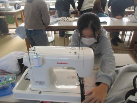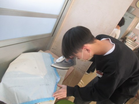 家庭科室でエプロンの制作に一生懸命に取り組んでいました。