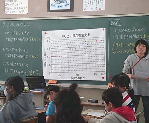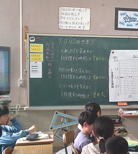 1組の理科では,ふりこのきまりについて学習していました。