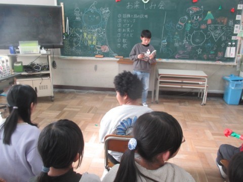 お楽しみ会をしています。プログラムの内容は学習に関係したものが多いです。