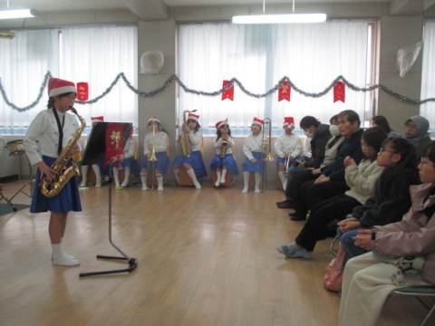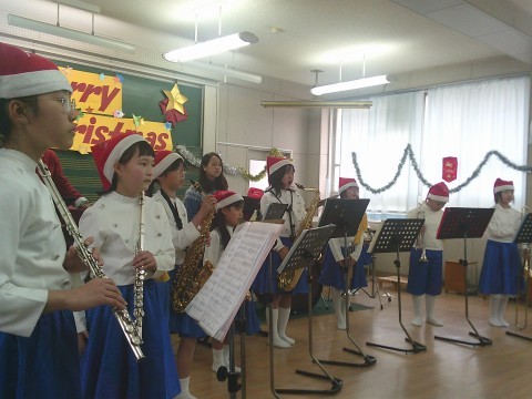 吹奏楽部 クリスマスコンサート 1 公開日 2025/12/24 更新日 2025/12/24 校長室 12月24日(水)中百舌鳥小学校の吹奏楽部のクリスマスコンサートを音楽室で行いました。たくさんのお客さんの前で,いろいろな曲の演奏を披露してくれました。みなさんの日ごろの練習の頑張りがわかる素敵なコンサートでした。 +7