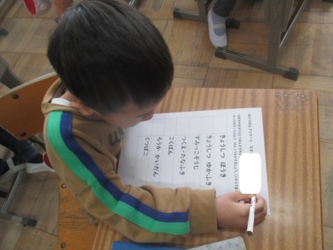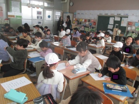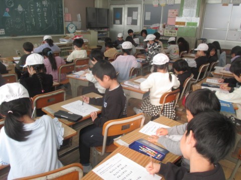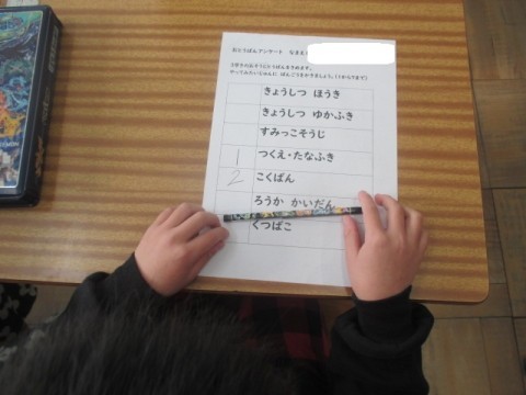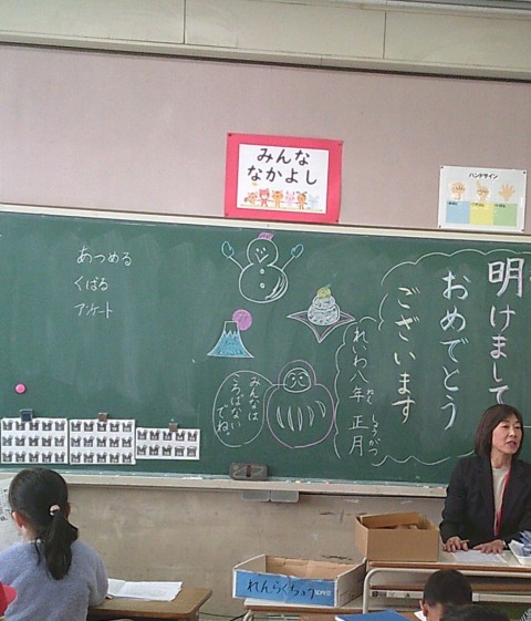 1年 学習の様子3 公開日 2026/01/08 更新日 2026/01/08 1年生 1月8日(木)3組では,3学期に配る配布物の説明をみんなで聞いていました。そのあと,「おとうばんアンケート」を書いていました。 +3