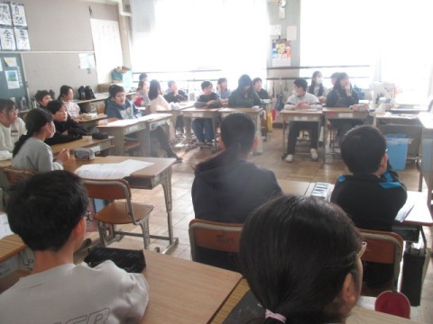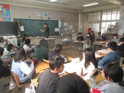 2組では,3学期にむけてのお話を先生がされていました。