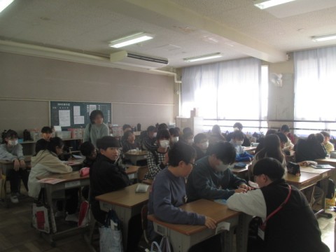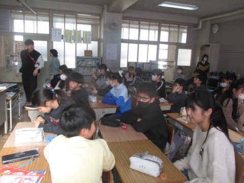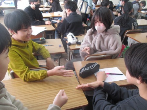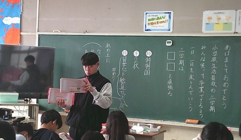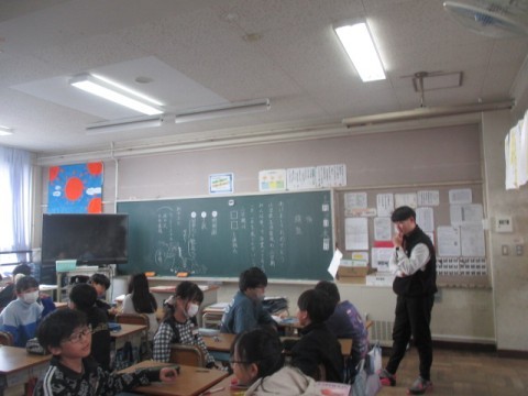 6年 学習の様子4 公開日 2026/01/08 更新日 2026/01/08 6年生 1月8日(木)4組では,3学期の配布物の説明をしていました。3時間目は,なんだか楽しそうです。「冬休みのできごと」を3つ考えます。2つは本当のこと,2つはうそを考えるようです。グループになり,それを話していきます。どれが「うそ」の話なのかを当てるゲームをしていました。 +3