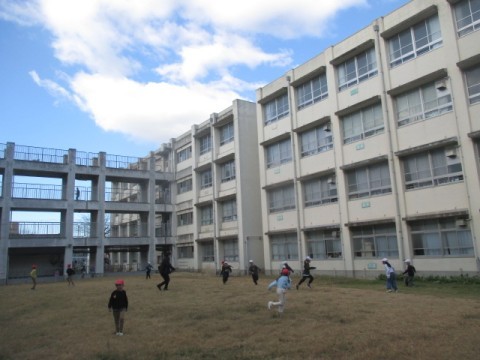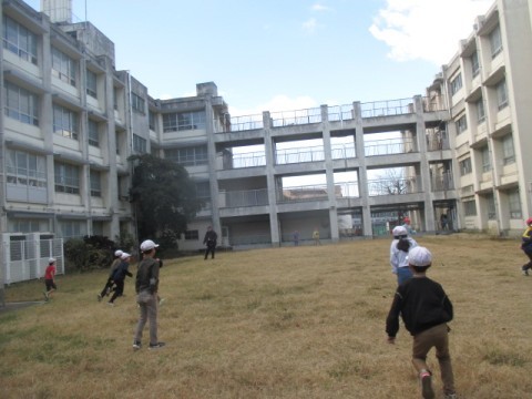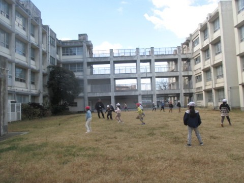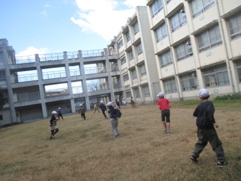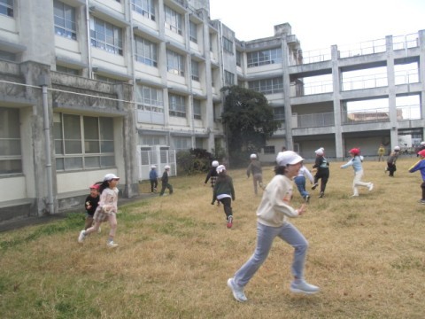 「先生おにごっこをしてるねん。」と教えてくれました。先生が「おに」になり,みんなをおいかけていました。