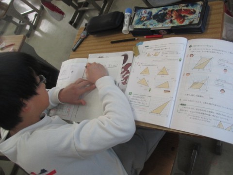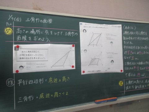 めあては,「高さの場所に気をつけて三角形の面積をもとめよう」です。