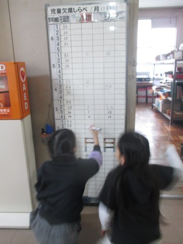 朝のようす 公開日 2026/01/13 更新日 2026/01/13 校内情報(中百舌鳥小) 1月13日(火) 朝から,こどもたちは,元気に運動場で,遊んでいます。職員室前のホワイトボードには,出席状況を記入しに来ています。 +2