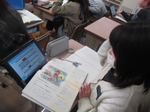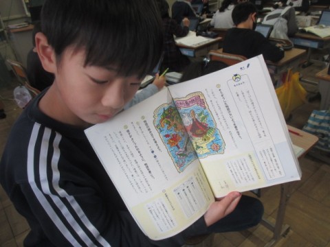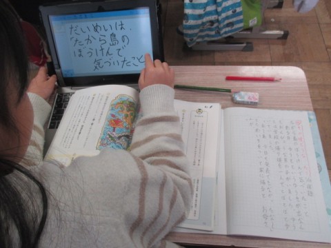 3年 学習のようす 4 公開日 2026/01/13 更新日 2026/01/13 3年生 1月13日(火) 4組の国語「たから島のぼうけん」の学習です。今日のめあては,「【はじまり】→【できごと】→【むすび】を使う力をつける」です。タブレットを使って,考えています。 +4