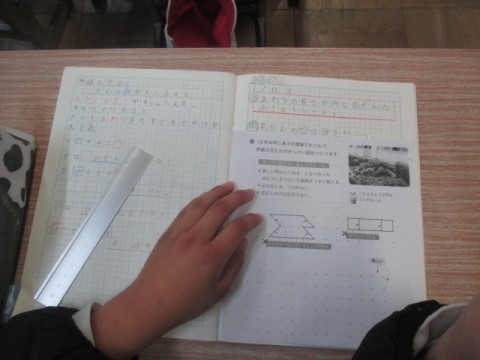 3組の算数「広さのくらべ方を考えよう」の学習です。