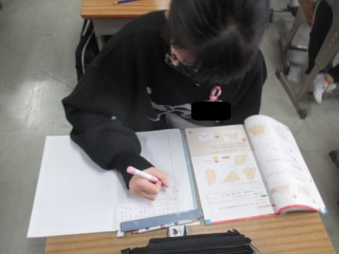 5年 学習のようす 3 公開日 2026/01/13 更新日 2026/01/13 5年生 1月13日(火)3組の算数「台形の面積」の学習です。今日のめあては「これまで学習したことをもとに台形の面積を求めよう」です。 +2