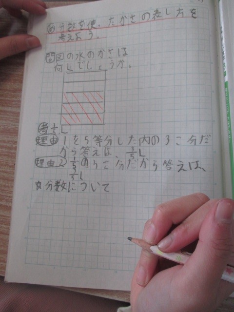 3年 学習の様子2 公開日 2026/01/15 更新日 2026/01/15 3年生 1月15日(木)2組の社会では,堺市の昔と今のうつりかわりについて学習していました。算数「分数」の学習では,「分数を使ったかさの表し方を考えよう」に取り組んでいます。 +6