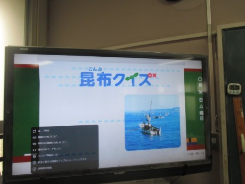 昆布はどのようにとるのか,昆布が店にならぶまでの工程を昆布のクイズを楽しみながらの授業です。