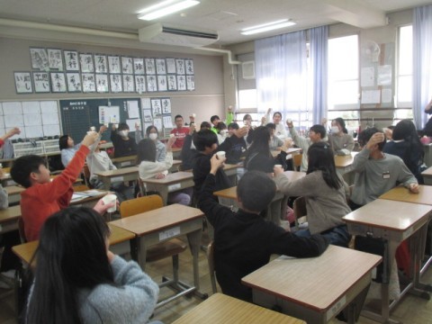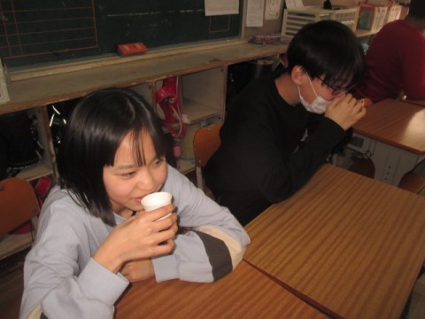 こどもたちから「卒業を前にみんなで乾杯しよう」という声があがり,「かんぱ~い」と試飲しました。