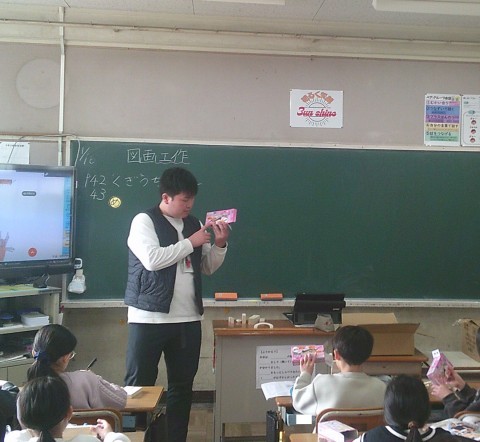 2組の図工では,くぎうちトントンというテーマのもと木を使って何を制作するか考えていました。