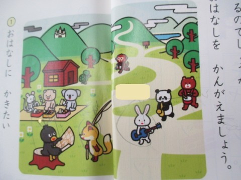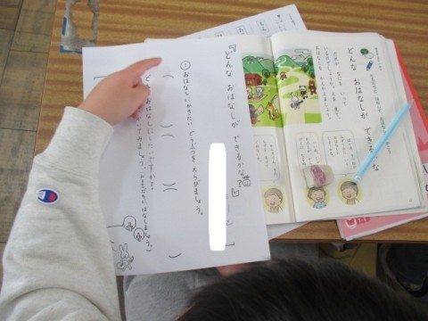 1組の国語「どんなおなはしができるかな」の学習です。