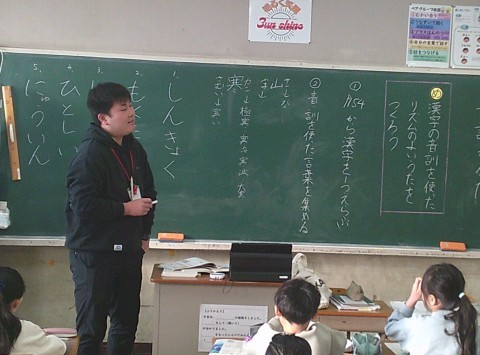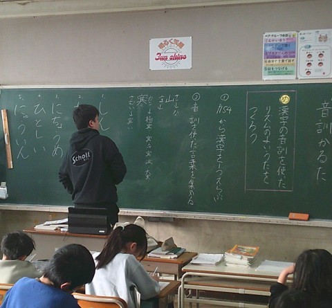 2組の国語では,漢字の音訓を使ったリズムのよいうたを作る学習に取り組んでいました。