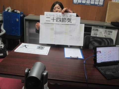 「二十四節気」の意味と今年の『大寒』は,明日,1月20日は今年の大寒となり,厳しい寒さとなるということが話されました。