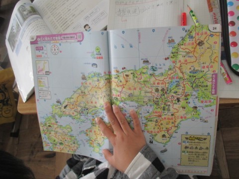 めあては「鉄道の広がりについて知ろう」です。地図帳を使って調べていました。