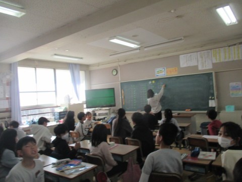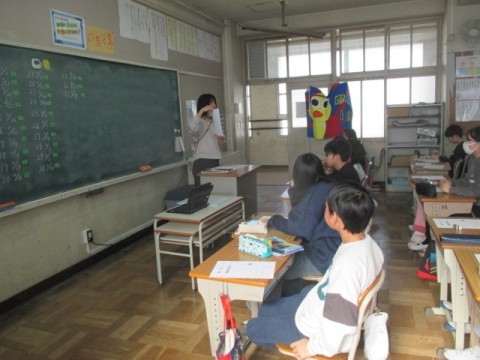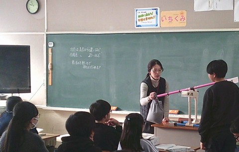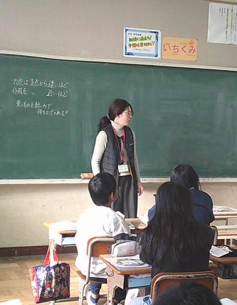 1組の理科では,てこのはたらきについて学習していました。力点・支点・作用点の関係について話し合っていました。