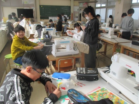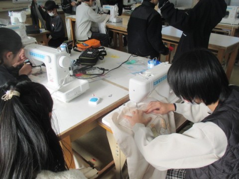 6年 学習のようす 4 公開日 2026/01/22 更新日 2026/01/22 6年生 1月22日(木) 4組の家庭科「エプロン作り」のようすです。今日のめあては「エプロンを完成させよう」です。ポケットやひもをつけます。アイロンでつくパッチクロスでエプロンをアレンジしています。 +7