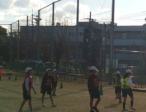 1組の体育では,サッカーに取り組んでいました。