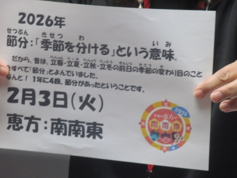 今年の恵方は南南東です。今年も1年,健康に過ごしましょう!