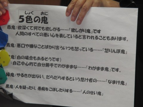 来週が行事のため,全校朝礼の時間がとれませんので,校長先生からひと足早い『節分』のお話がありました。