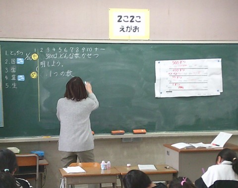 1組の算数では,3800という数字がどんな数字なのかを説明する学習に取り組んでいました。