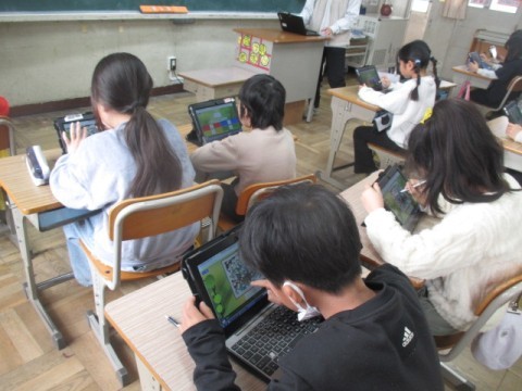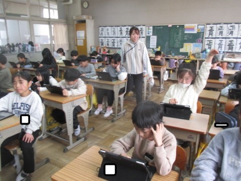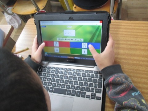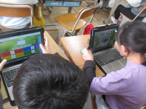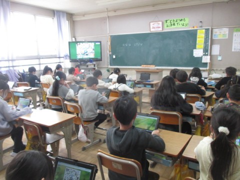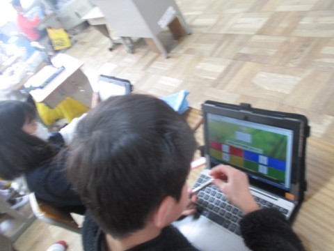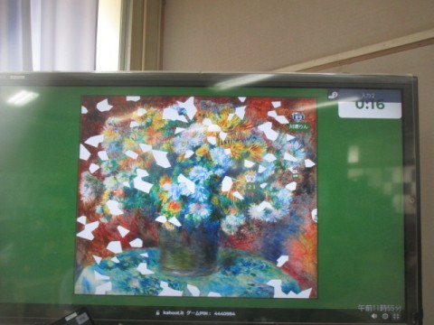正解すると筆が動き,テレビ画面に映し出された絵が完成するそうです。みんな真剣に一生懸命に取り組んでいました。