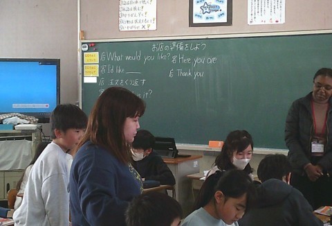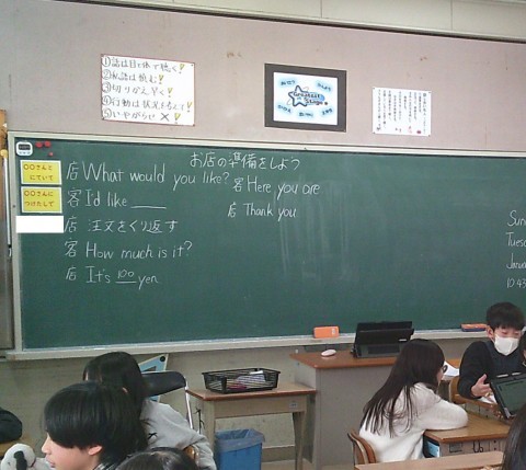 1組の外国語では,What would you like ~? という構文の学習に取り組んでいました。