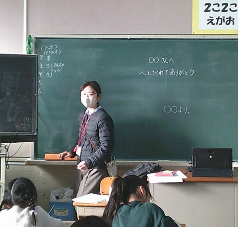 2組の特別活動では,友だちへのありがとうメッセージを作成していました。
