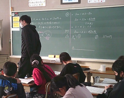 1組の算数では,割合の学習に取り組んでいました。