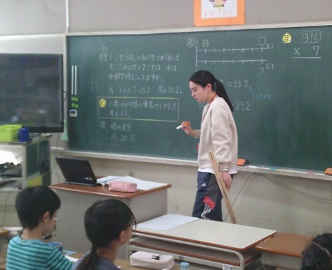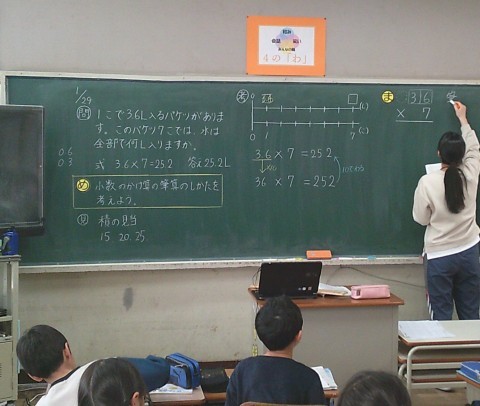 2組の算数では,小数のかけ算の筆算について取り組んでいました。