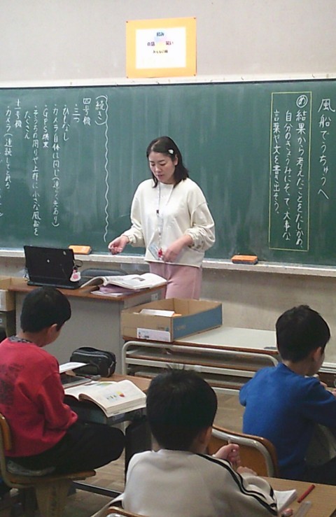 3組の国語では,風船でうちゅうへの単元の学習に取り組んでいました。