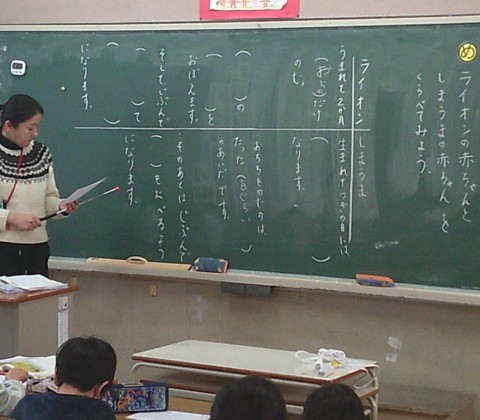 1組の国語では,動物のあかちゃんについて学習していました。