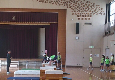 3組の体育では,とび箱を使った運動に取り組んでいました。