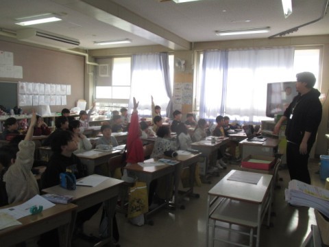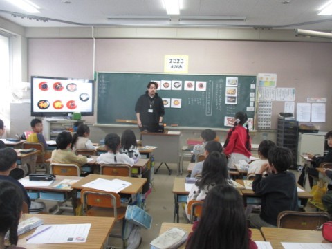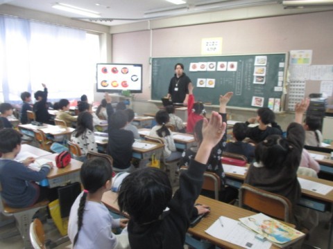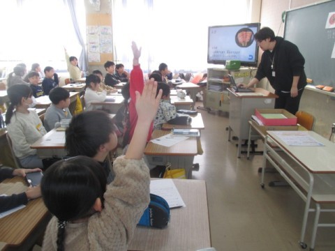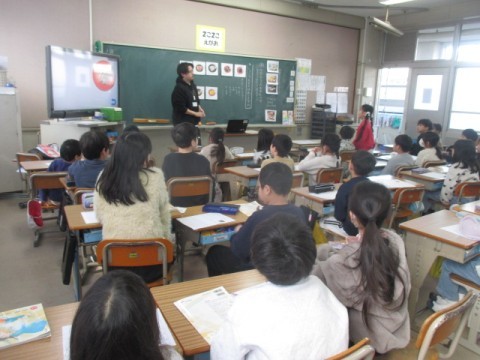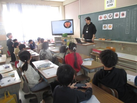 2組では「おせちのひみつ」の学習を3組の先生が進めています。